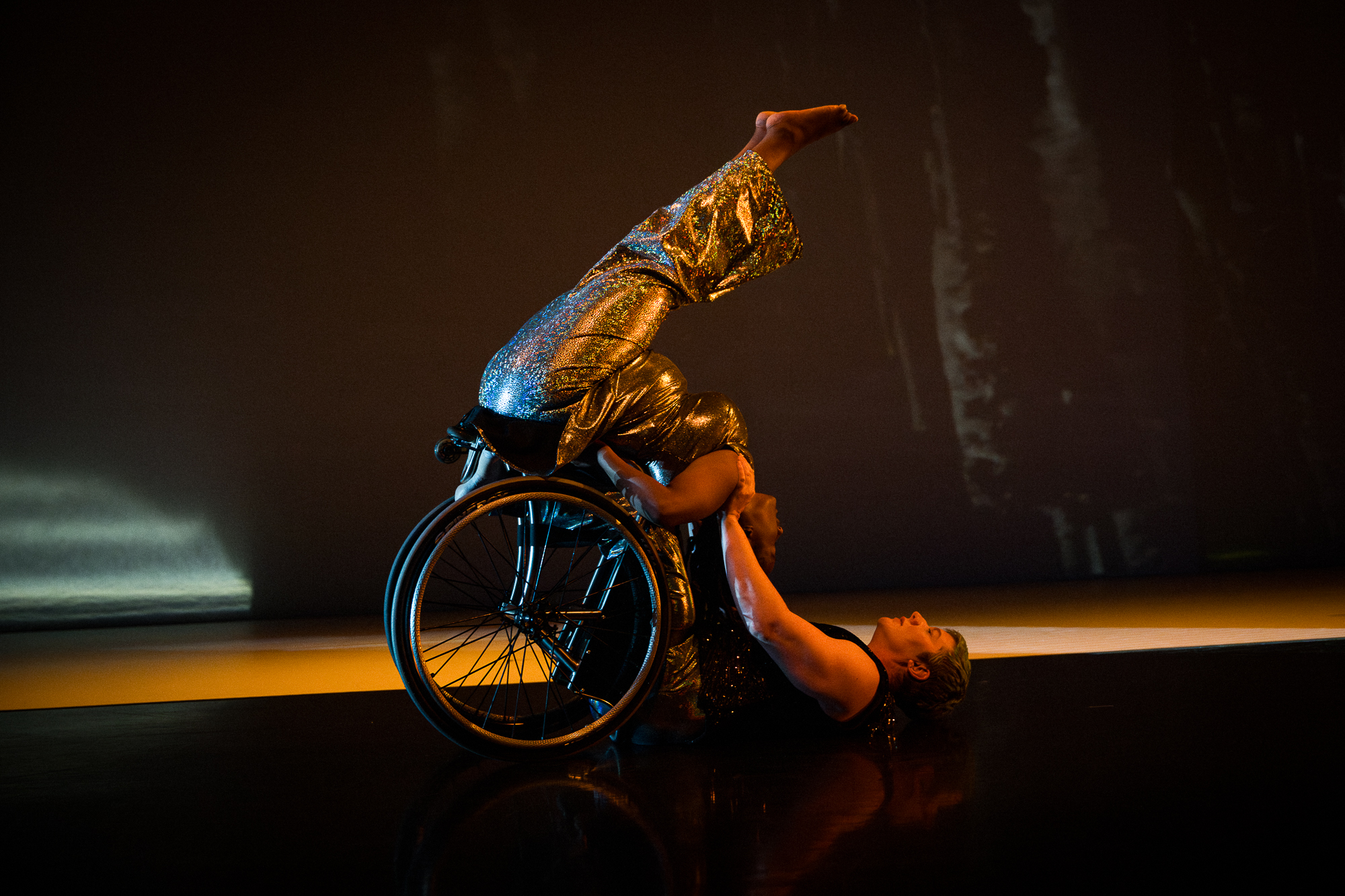 Performed on a custom-designed architectural ramp installation with hills, curves, and peaks, DESCENT explores the pleasures of wheeled movement and reckless abandon. Combining dance, architecture, design, and technology, this evening-length work challenges cultural assumptions of what disability, dance, and beauty can be. Inspired by the sensual writings and art of French sculptor Auguste Rodin, DESCENT gives the mythological characters of Venus and Andromeda new life as interracial lovers.